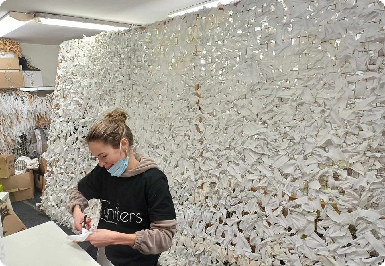 W centrum Warszawy tkają siatki dla Ukrainy. „Ręce czasami bolą, ale pomagamy swoim”